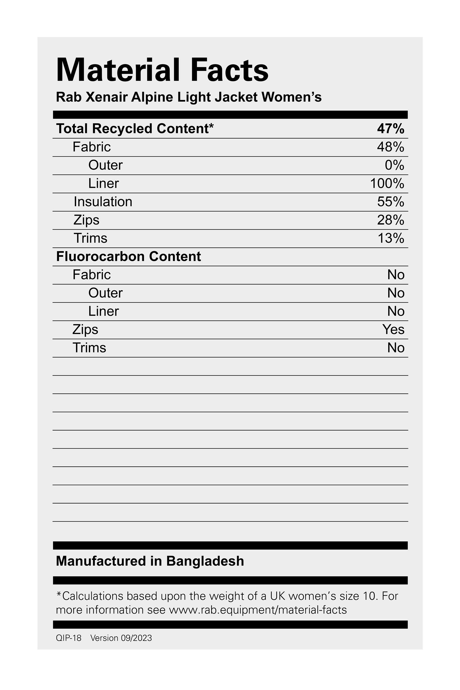 Rab Xenair Alpine Light Jacket Wmns EBN Ebony Lett og allsidig – den perfekte ytterjakken for raske og lette sommerturer, eller som et pålitelig mellomlag i kjøligere vær." Produsent: Rab Sku: QIP-18 Storleik * Vel 8 10 12 14 16 kr 2 499,00 Antall: Kjøp Send til Velg land Norway * Annen * Fraktmetode Navn Estimert leveringsdato Pris Ingen fraktalternativer Bruk Eigendefinert ønskjeliste Ok Legg til i ønskjelista Legg til i samanlikningslista Tips en venn Tilpasningsdyktig, lett og allsidig, Xenair Alpine Light Hoody er en syntetisk isolert jakke med to isolasjonsvekter som utmerker seg under varierende forhold og aktiviteter med vekslende intensitet.Med et svært pustende og værbestandig ytterstoff i Pertex® Quantum Air og to tykkelser av resirkulert PrimaLoft® Gold Active+ isolasjon, er den konstruert for å holde på varmen når du er i ro og slippe inn luft så snart aktivitetsnivået øker.Ved strategisk kroppstilpasning av de ulike isolasjonstetthetene – med lettere isolasjon under armene, langs sidene, nedover ryggraden og på toppen av hodet – balanserer jakken kroppstemperaturen effektivt og eliminerer behovet for å stadig skifte lag.Optimalisert for bevegelse har Xenair Alpine Light Hoody artikulerte ermer og en lett YKK® glidelås foran med hakebeskyttelse for komfort. Mansjettene er elastiske for en sømløs passform når du bruker hansker, og nederkanten kan justeres for personlig tilpasning.Den har en justerbar, hjelmkompatibel hette og tre skjulte YKK® glidelåslommer: én på brystet og to frontlommer, hvorav den ene også fungerer som pakkpose. Skildring Spesifikasjonar Omtalar Kontakt Oss Tilpasningsdyktig, lett og allsidig, Xenair Alpine Light Hoody er en syntetisk isolert jakke med to isolasjonsvekter som utmerker seg under varierende forhold og aktiviteter med vekslende intensitet.Med et svært pustende og værbestandig ytterstoff i Pertex® Quantum Air og to tykkelser av resirkulert PrimaLoft® Gold Active+ isolasjon, er den konstruert for å holde på varmen når du er i ro og slippe inn luft så snart aktivitetsnivået øker.Ved strategisk kroppstilpasning av de ulike isolasjonstetthetene – med lettere isolasjon under armene, langs sidene, nedover ryggraden og på toppen av hodet – balanserer jakken kroppstemperaturen effektivt og eliminerer behovet for å stadig skifte lag.Optimalisert for bevegelse har Xenair Alpine Light Hoody artikulerte ermer og en lett YKK® glidelås foran med hakebeskyttelse for komfort. Mansjettene er elastiske for en sømløs passform når du bruker hansker, og nederkanten kan justeres for personlig tilpasning.Den har en justerbar, hjelmkompatibel hette og tre skjulte YKK® glidelåslommer: én på brystet og to frontlommer, hvorav den ene også fungerer som pakkpose. Produktspesifikasjoner Attributtnavn Attributtverdi Butikklager På lager i butikk Kjønn Dame Produkttype Overdel, Jakke